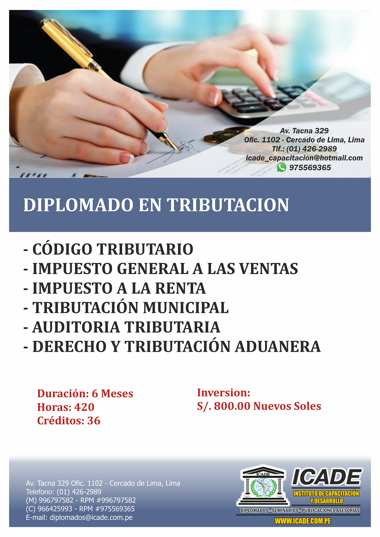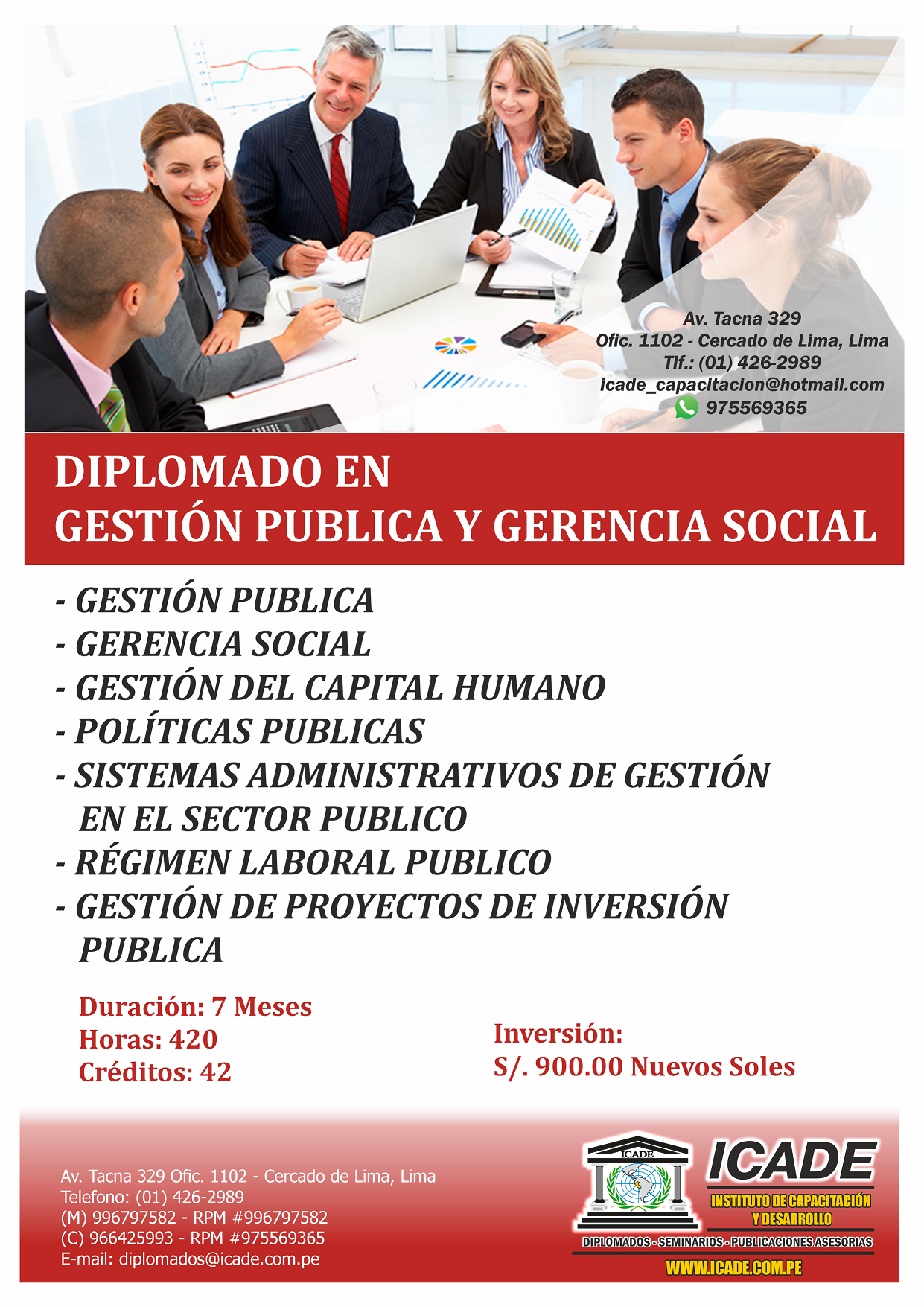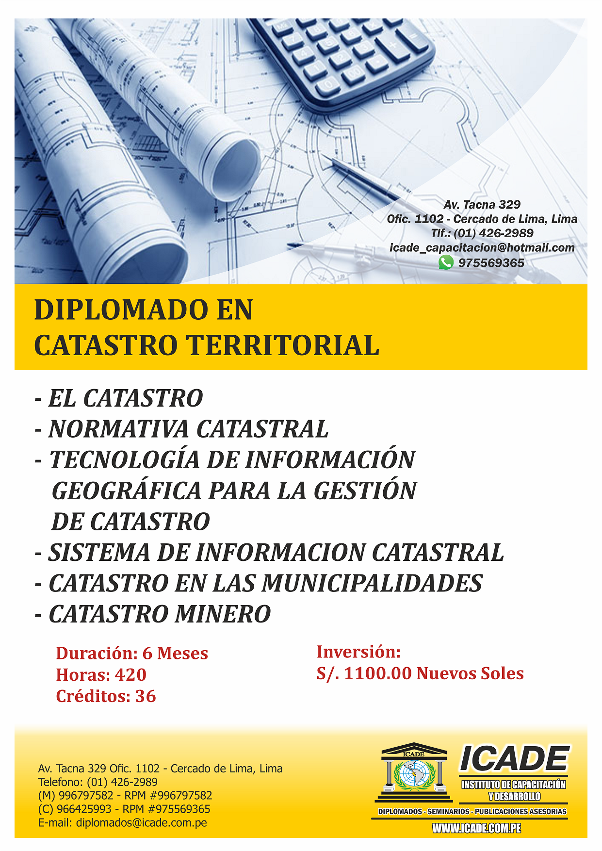 El Instituto de Capacitación y Desarrollo - ICADE, les da su más cordial bienvenida a su portal Institucional; y esa bienvenida se da porque sin duda nos sentimos muy satisfechos por ser parte y actor del universo que nos configura. Esto es lo que hace que ICADE se haya convertido en un paradigma inconfundible en la capacitación, investigación y especialización profesional en el Perú.